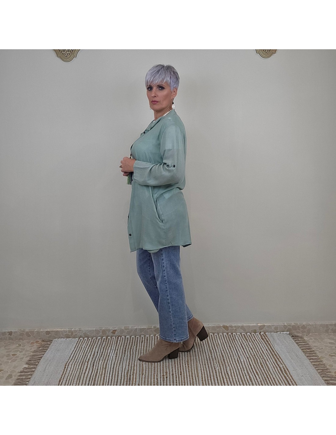 La camisa es una prenda elaborada en rayón , tiene una caída suave y un diseño amplio , imprescindible para quienes buscan
